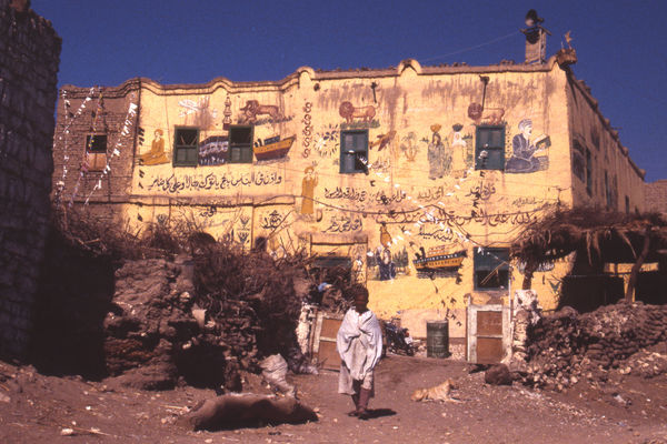 In the 1980s and 90s most of the best murals were done by Mohamed abd el Malek, who was also the headmaster at the Valley of the Kings Primary School. In recent years Fenan Tayib has been the most prolific and recognisable artist. Tayib also did amazing work at the luxurious Al Moudira Hotel which opened 4 k to the South in 2002.